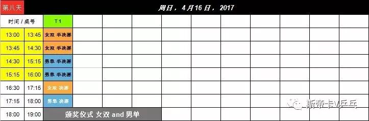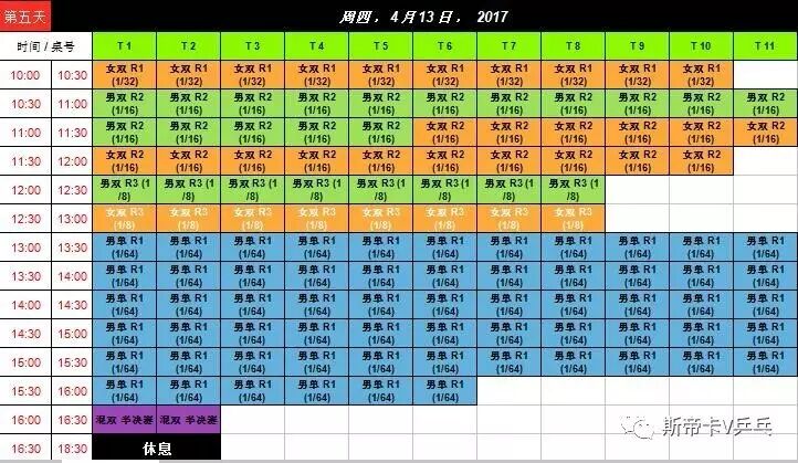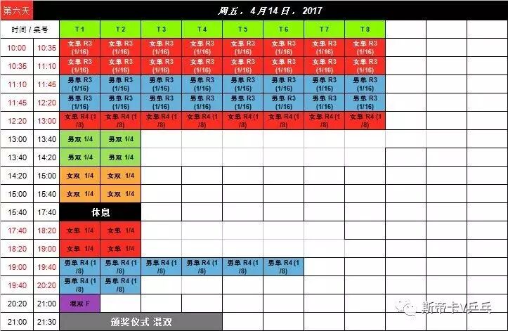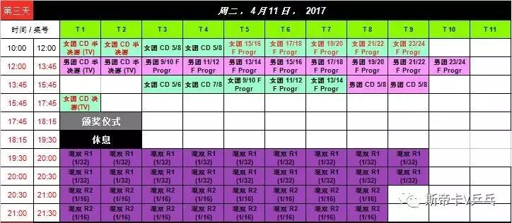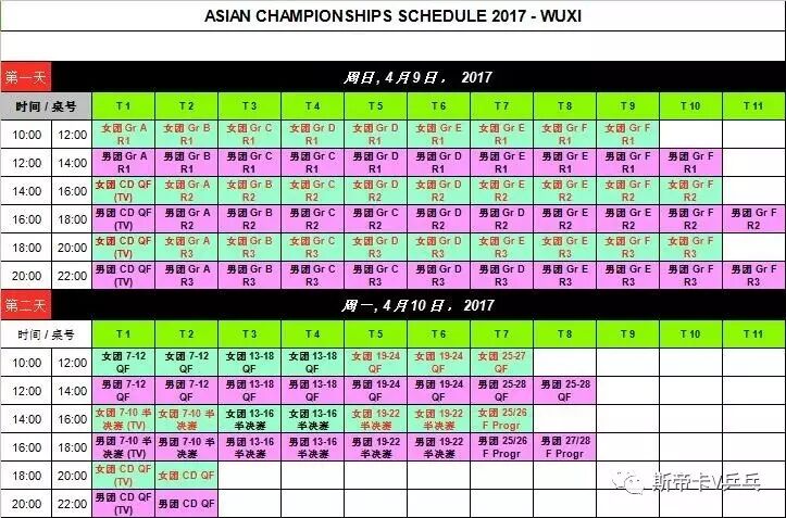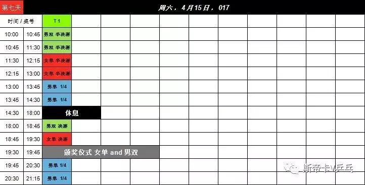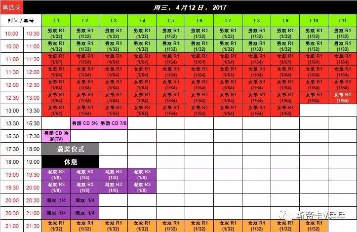 赛程表: