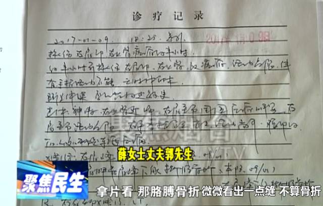 当记者询问病历上因打伤造成薛女士住院三天的情况,是否是因为家暴所致,郭先生表示这只是轻伤并不严重。