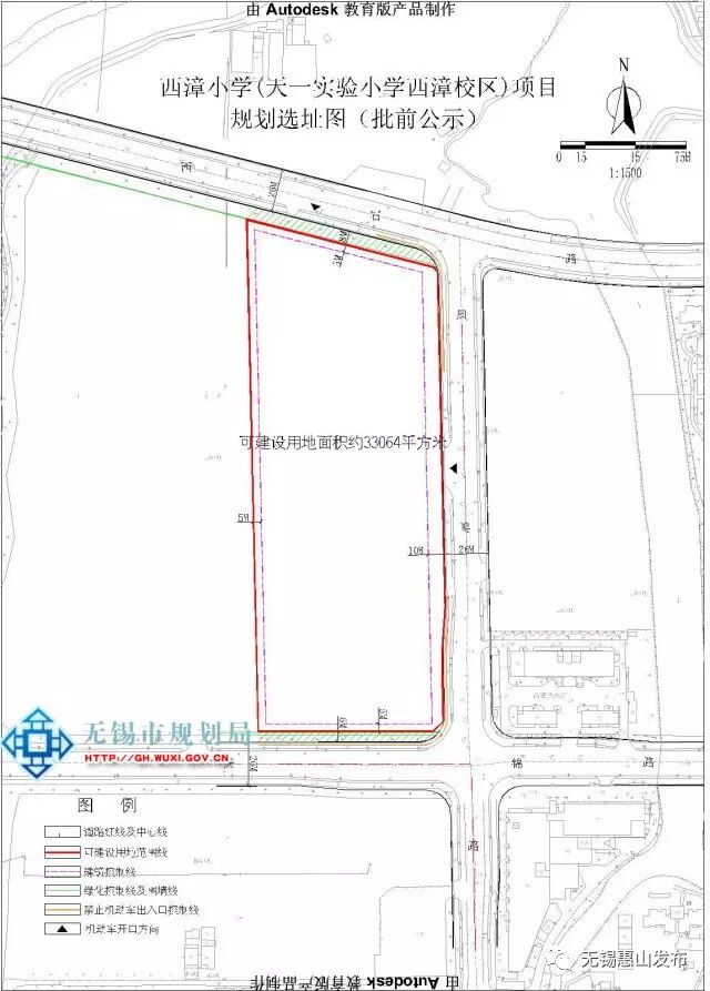该项目位于惠山区,建设单位为无锡天一新城建设有限公司,用地位于地铁西漳站区凤鸣路西侧,可建设用地面积约33064平方米,用地性质为中小学用地。届时将有42个班级。
